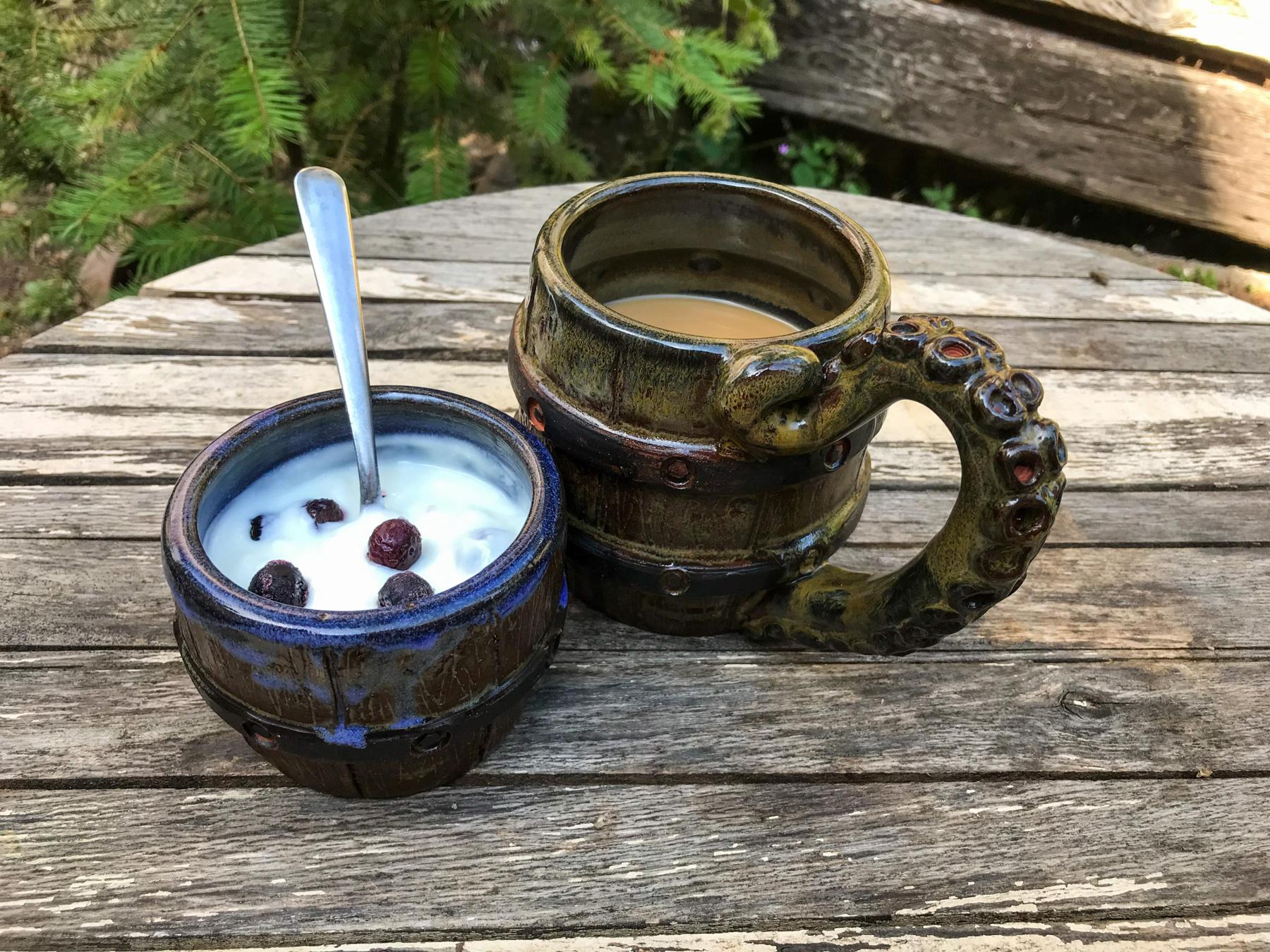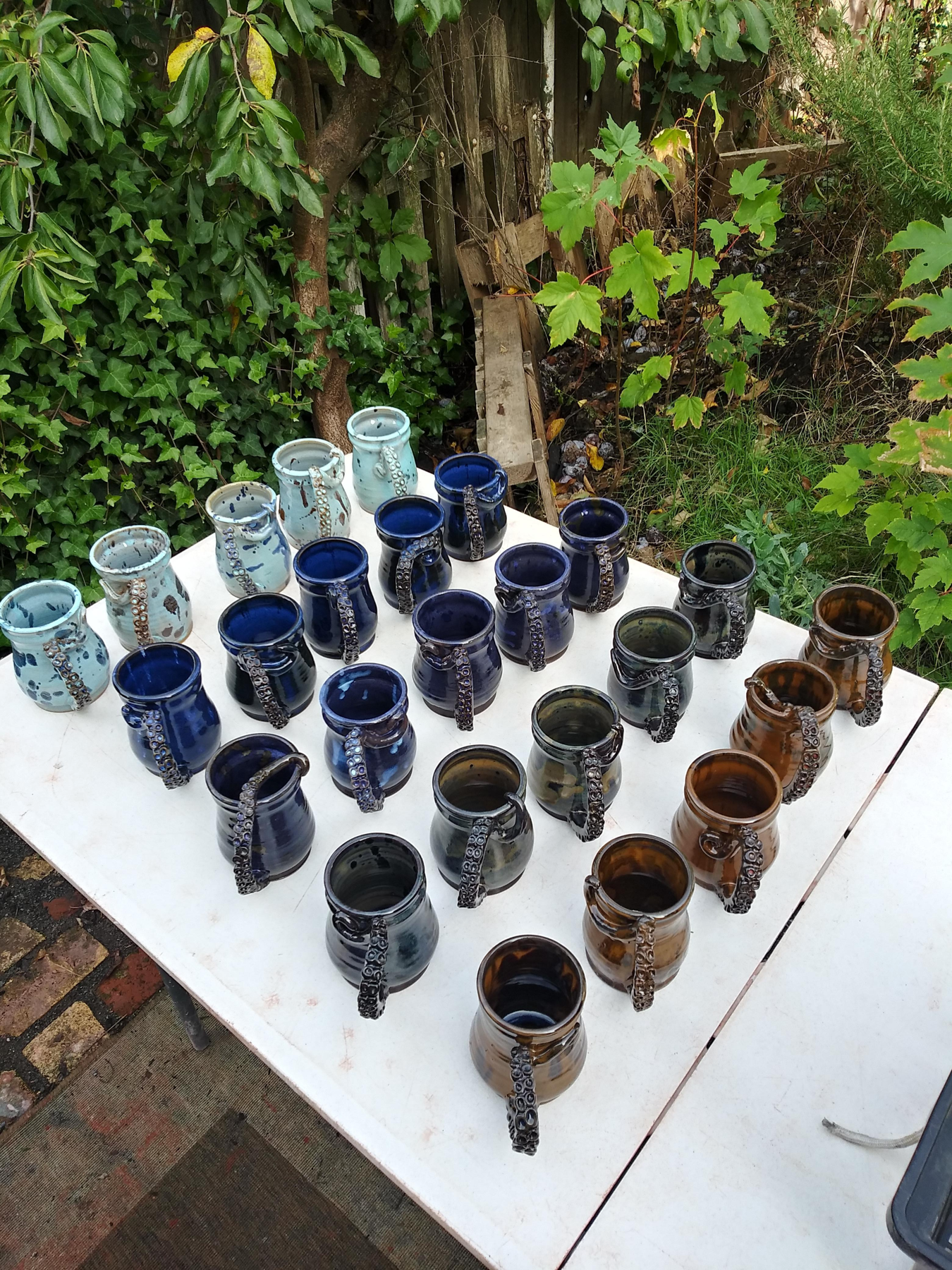All my glazes are lead-free. My wares are dishwasher-safe, and microwave-safe.
